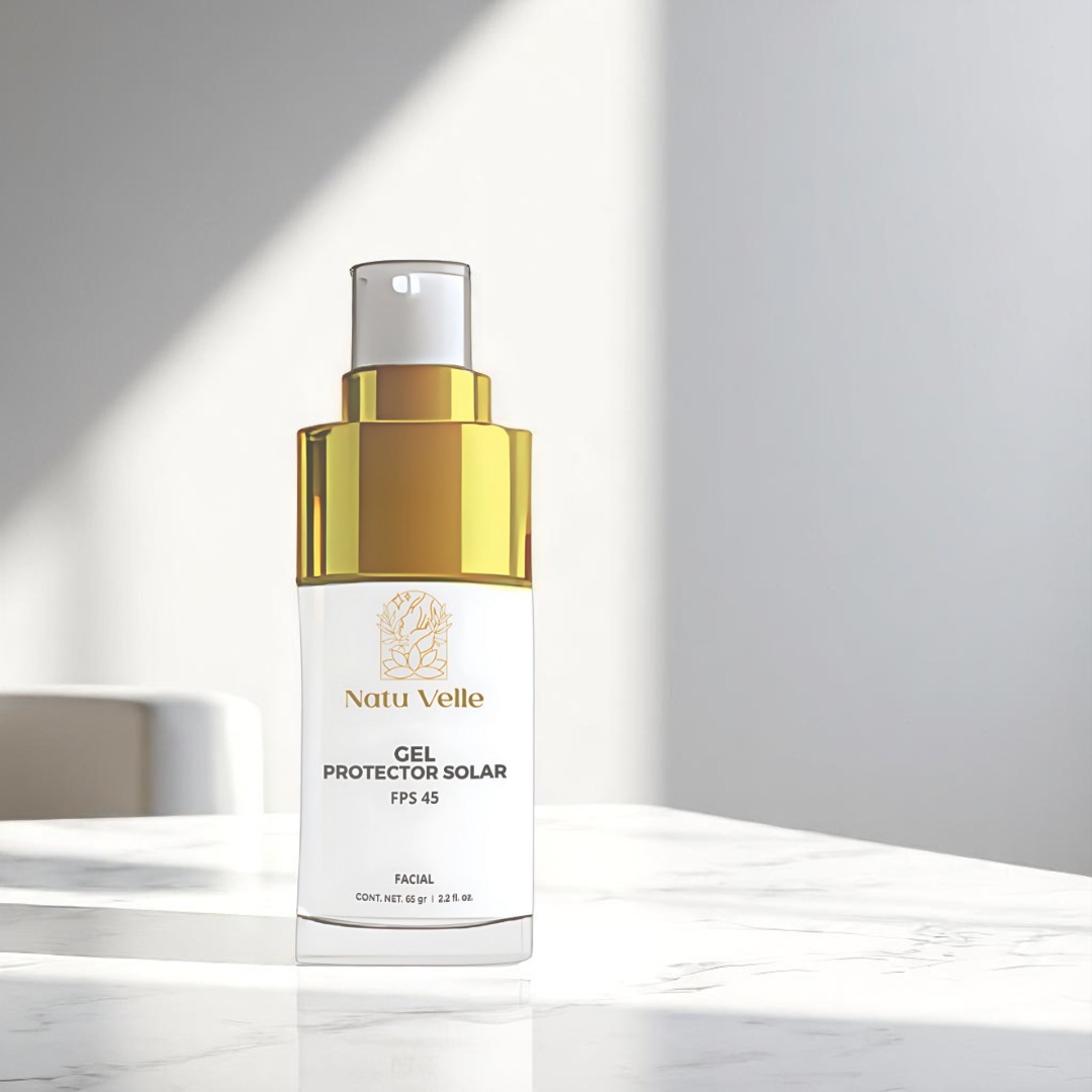 Este gel solar FPS 45 está formulado con colágeno hidrolizado, elastina y baba de caracol para hidratar, regenerar y proteger la piel. Incluye benzofenona 4 para filtrar rayos UV, además de propilenglicol y lanolina que retienen la humedad. Ideal para pieles que buscan protección sin sensación grasosa.